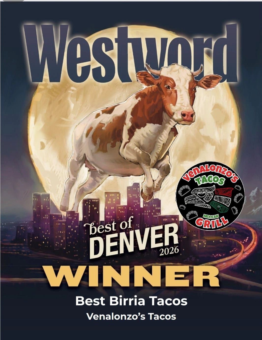 "Venalonzo's in Centennial was chosen by Denver Gazette readers as the best taco in Denver. A favorite of patrons at Venalonzo's are their quesabirria tacos, which contain meat folded on a crispy corn tortilla with cheese, onions and cilantro served with side of consommé broth for dipping."